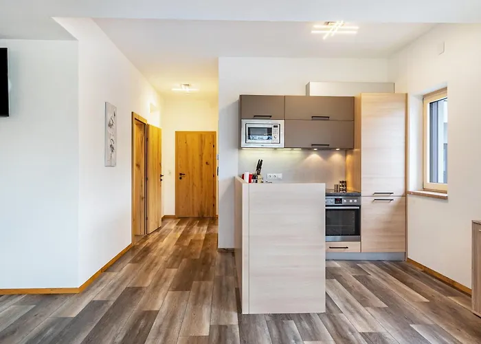 Die voll ausgestattete Küchenzeile ist ebenfalls vorhanden, ebenso wie eine Mikrowelle, ein Wasserkocher und Küchenutensilien. Vom Flughafen Innsbruck sind es ca. 52 Minuten mit dem Auto zur Ferienwohnung Steinwender. Die Gäste können sich dank einem Patio, Grillanlagen und den Gärten richtig entspannen. Oder einen Aktivurlaub mit Wandern, Skifahren und Radfahren gestalten.